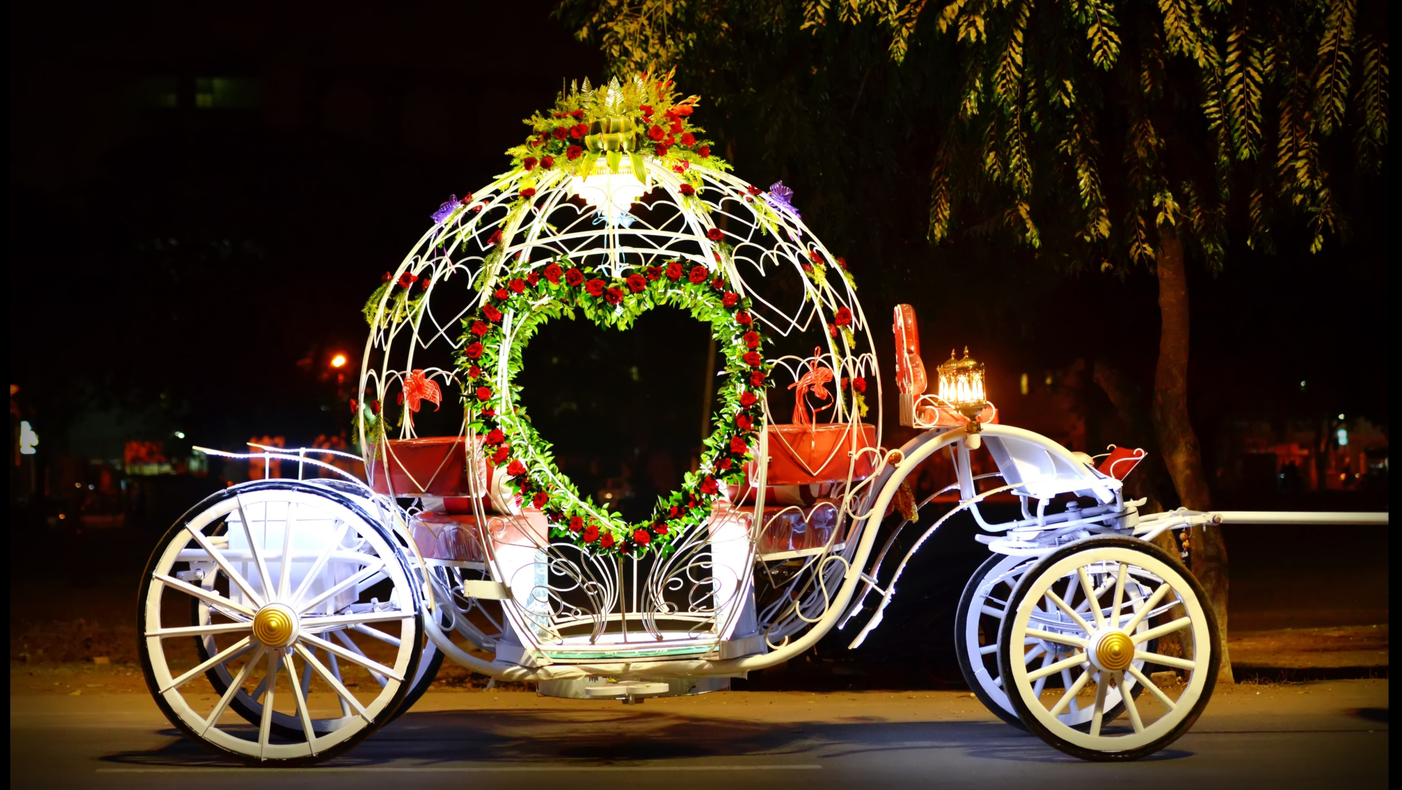 Its an Eco-friendly vehicle. & Being the First Lighting Cinderella Carriage in India, it gives an unique presentation in Barat, Bride Entry, Pre 'n' Post Weddings, Corporate Events, Award Shows, Selfie Zones, Rally's, Birthday Parties n many more...