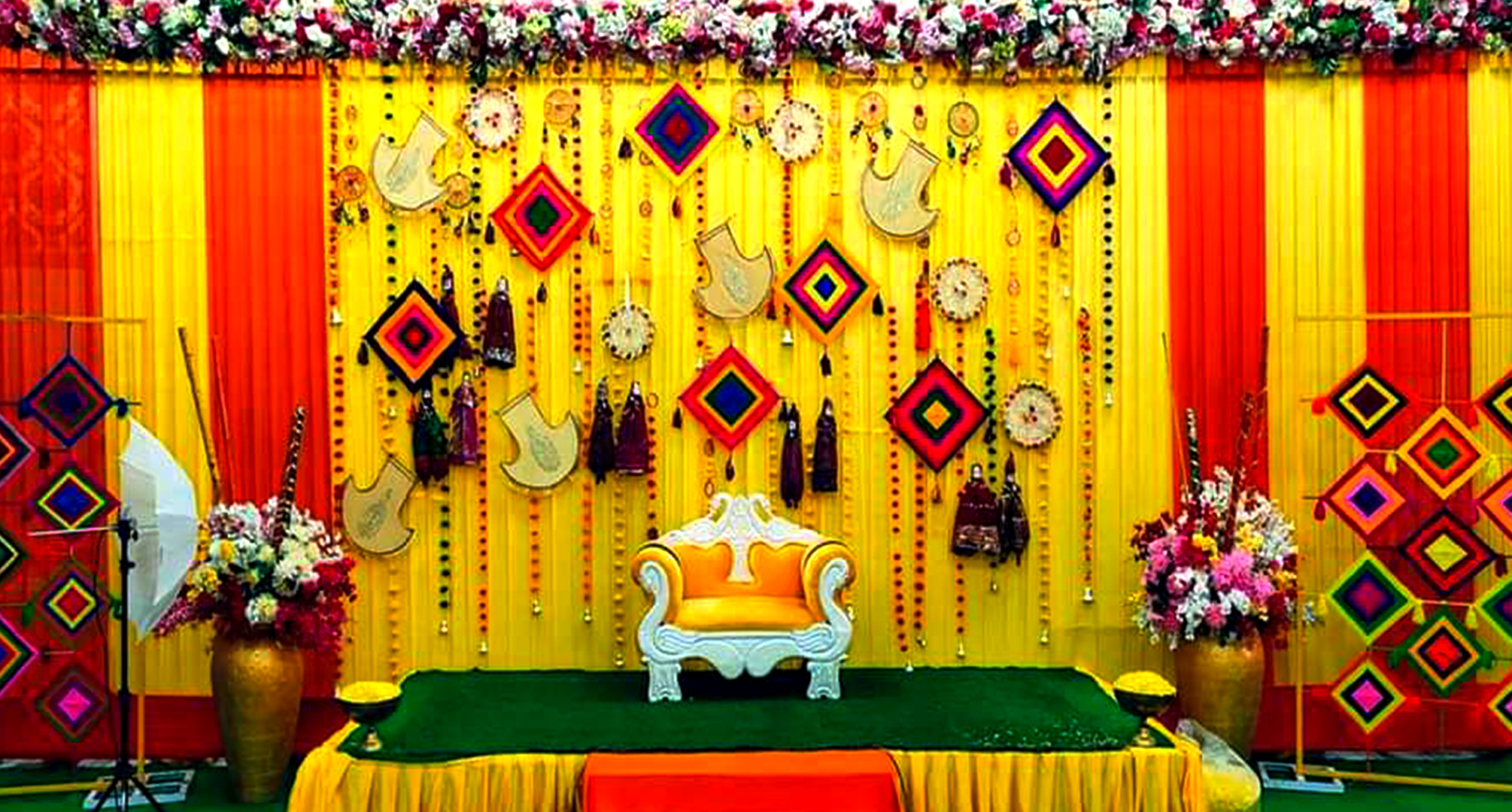 Mehendi 'n' Sangeet is an imporntant part of any wedding, its a pre-wedding occasion, so its also need an awesome mehendi designs, fabulous decoration with flowers, drapes, stage, 'n' props decor. Make it memorable with Hustler Events.